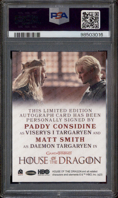 2024 House Of The Dragon Season One Dual Auto Paddy Considine Matt Smith PSA 9