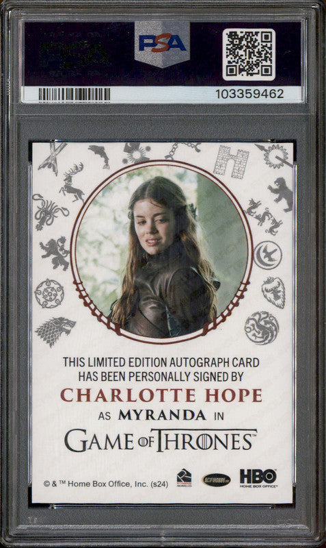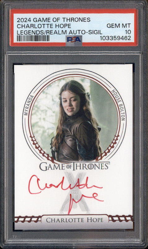 2024 Game Of Thrones Auto Legends of the Realm Auto Sigil Charlotte Hope PSA 10