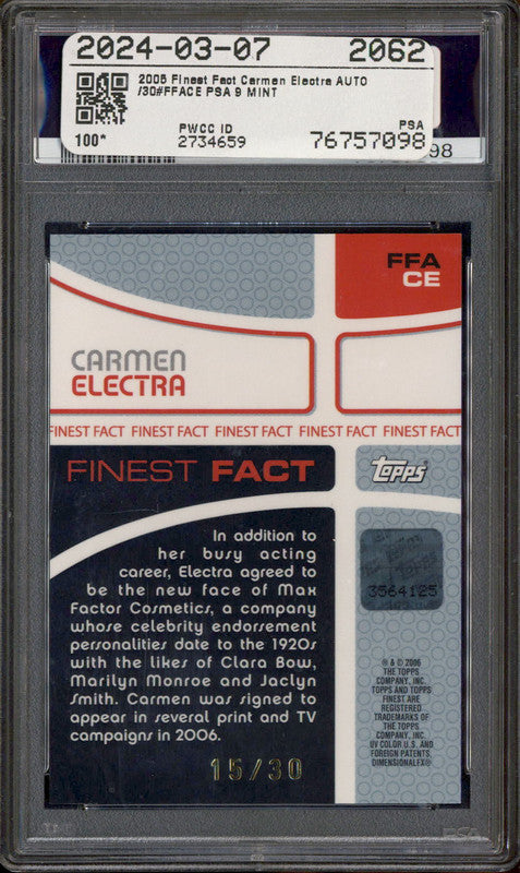 2005-06 Topps Finest Fact Autographs #FFA CE Carmen Electra Auto /30 PSA 9