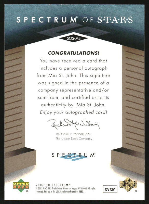 2007 Upper Deck Spectrum Spectrum of Stars Signatures #SOS-MS Mia St. John Auto