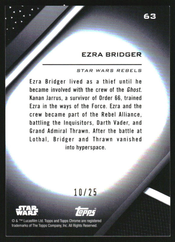 2022 Topps Chrome Black Star Wars Orange Refractors #63 Ezra Bridger /25