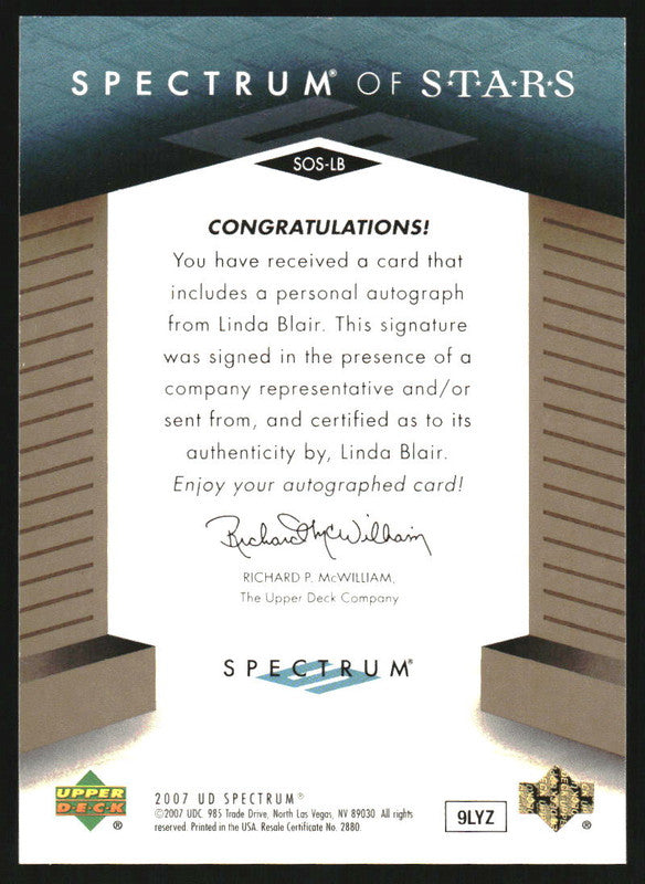 2007 Upper Deck Spectrum Spectrum of Stars Signatures #SOS-LB Linda Blair Auto