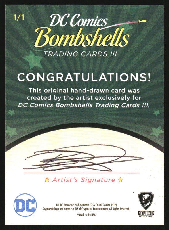 Cryptozoic DC Comics Bombshells Artist Signature Sketch Card 1/1