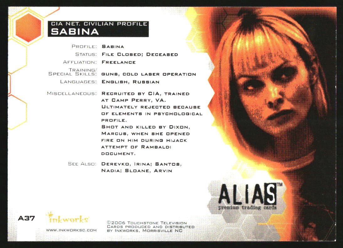 2006 Inkworks Alias Autograph Izabella Scorupco as Sabina Auto