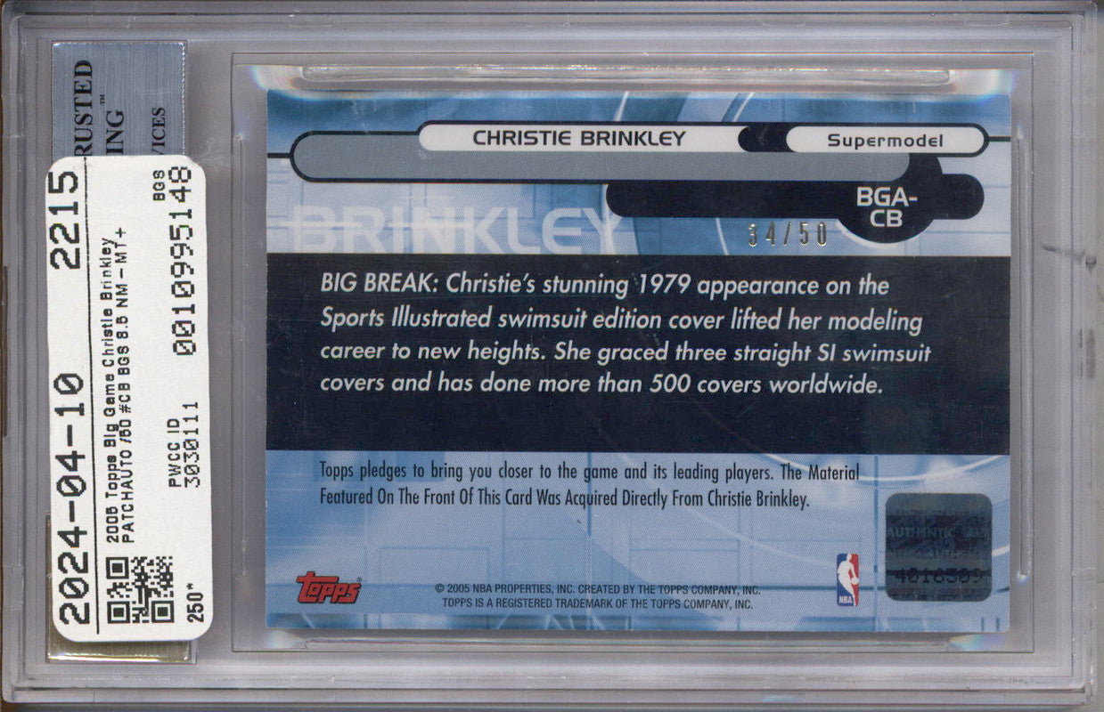 2005 Topps Big Game Relics Autograph Christie Brinkley Jeans Auto /50 BGS 8.5