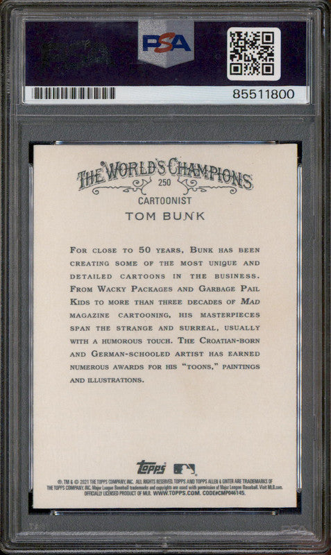 2021 Topps Allen Ginter Trading Card Tom Bunk Autograph Auto PSA Authentic