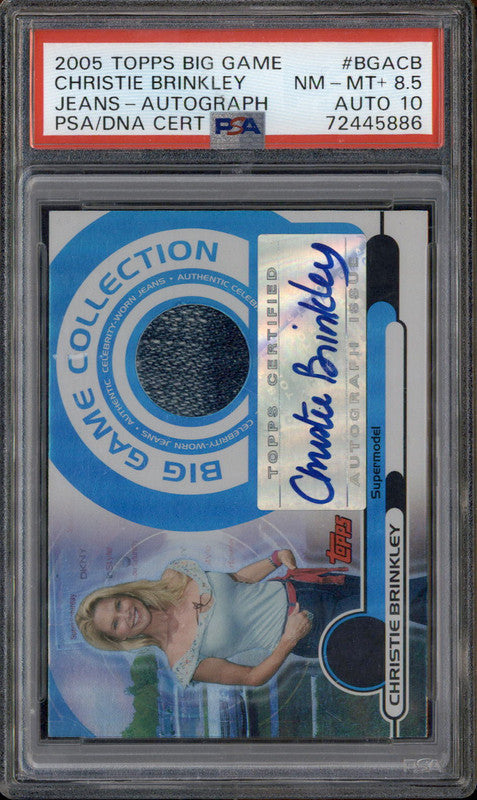 2005 Topps Big Game Collection Jersey Jeans Auto Christie Brinkley /50 PSA 8.5