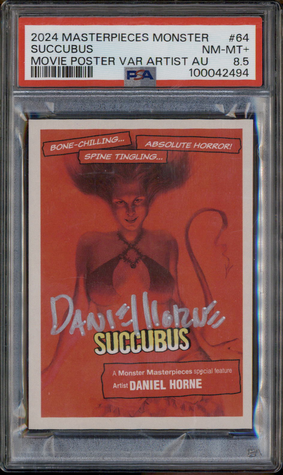 2024 Masterpieces Monster Movie Poster Var Artist Auto Succubus /10 PSA 8.5