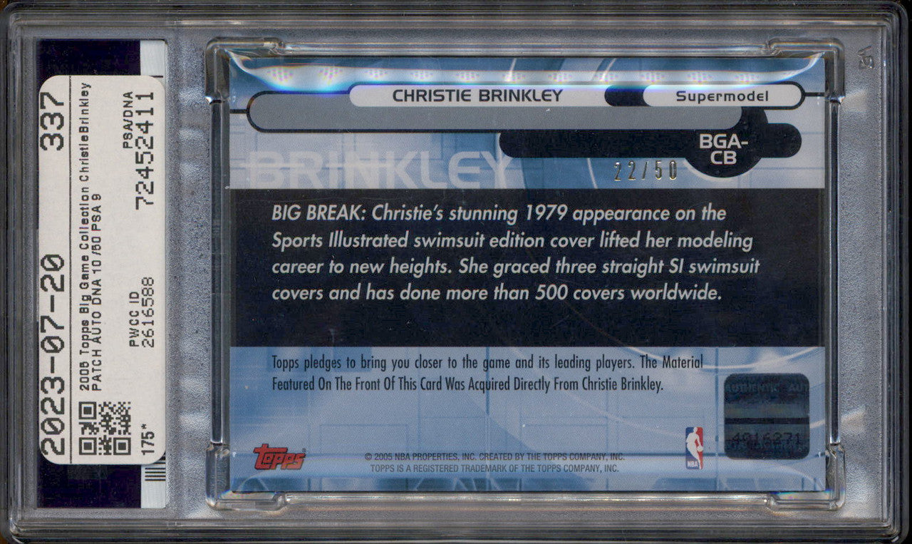 2005 Topps Big Game Jersey Autograph Christie Brinkley Auto /50 PSA 9