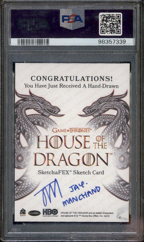 2024 House of The Dragon Sketch Card Jay Manchand Vhagar 1/1 PSA 10