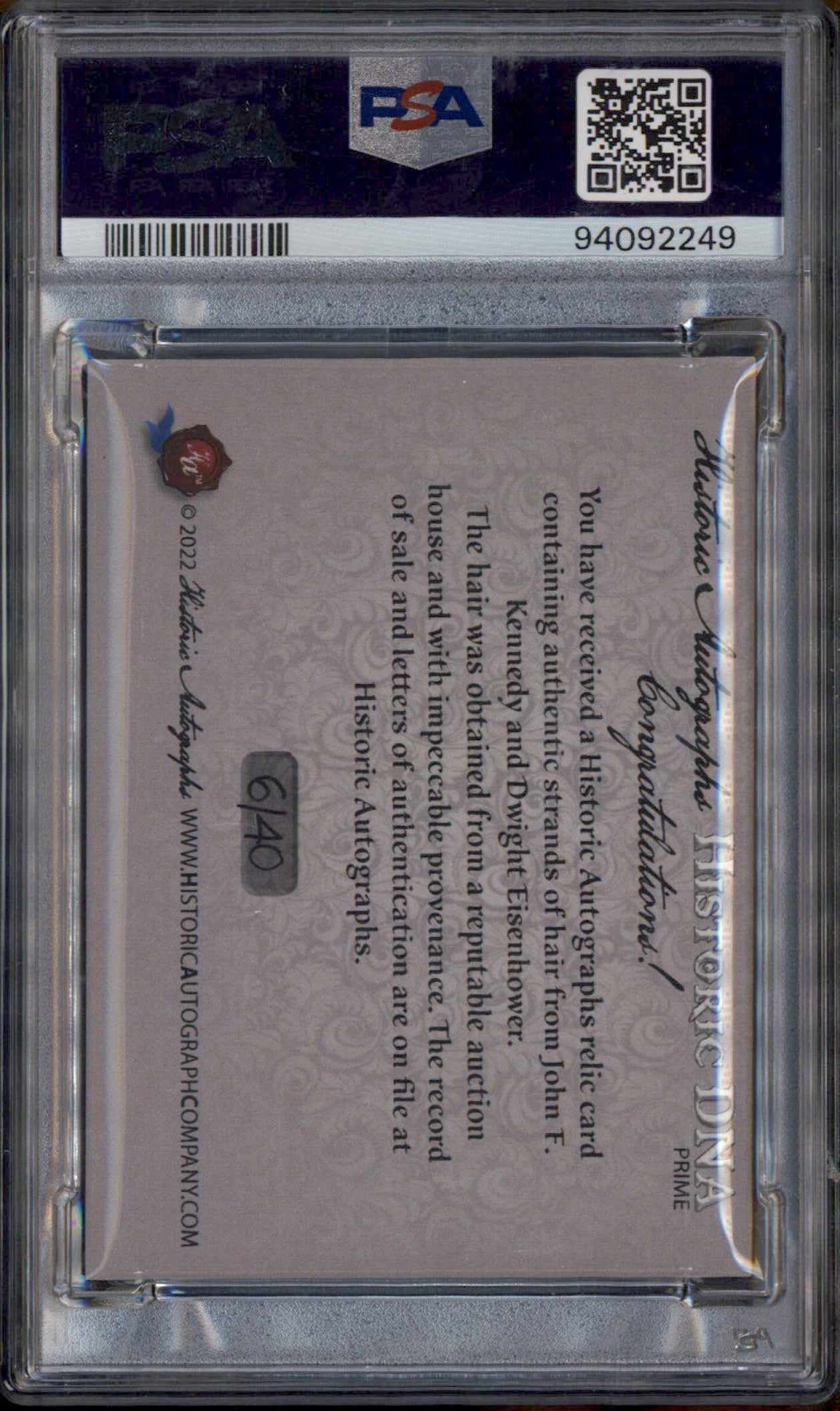 2023 Historic Prime Historic DNA John F Kennedy Dwight Eisenhower /40 PSA 8