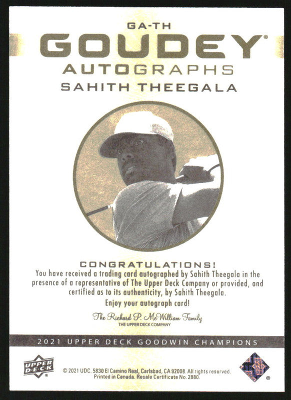 2021 Upper Deck Goodwin Champions Goudey Autographs #GATH Sahith Theegala Auto