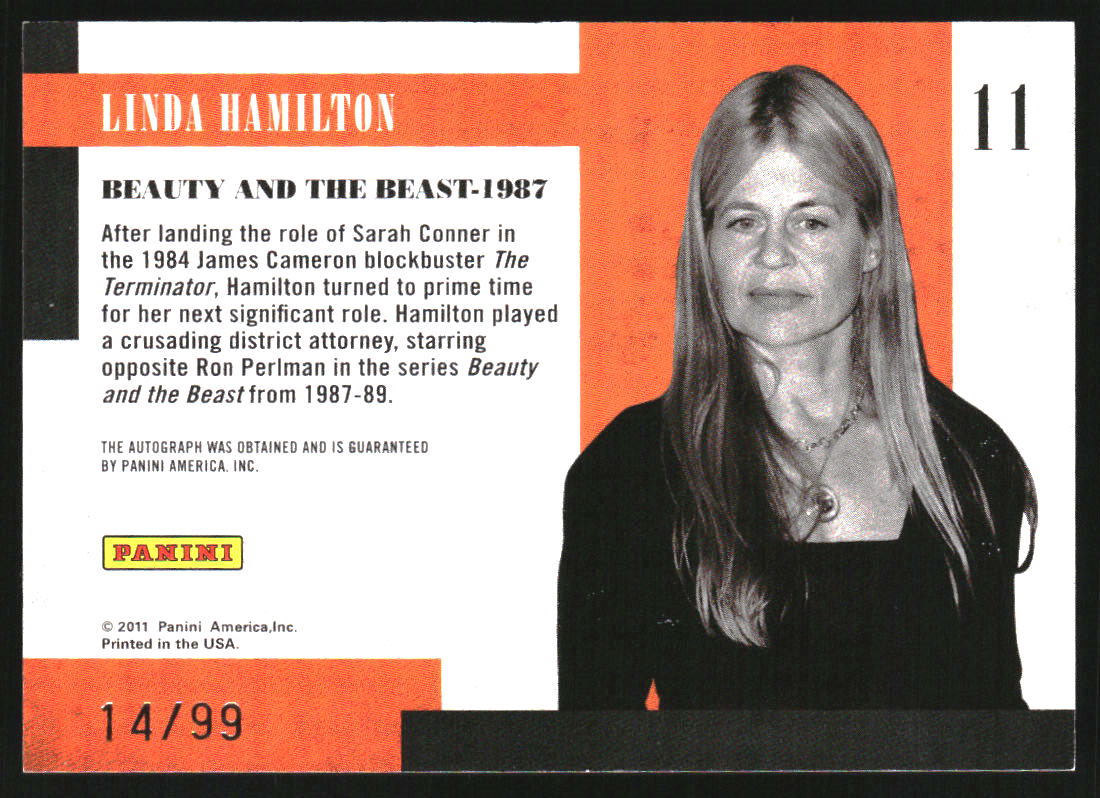 2011 Panini Americana Prime Time Stars Signatures Linda Hamilton Auto /99