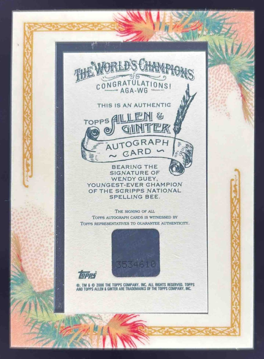 2006 Topps Allen & Ginter Autographs #AGA-WG Wendy Guey Autograph Auto