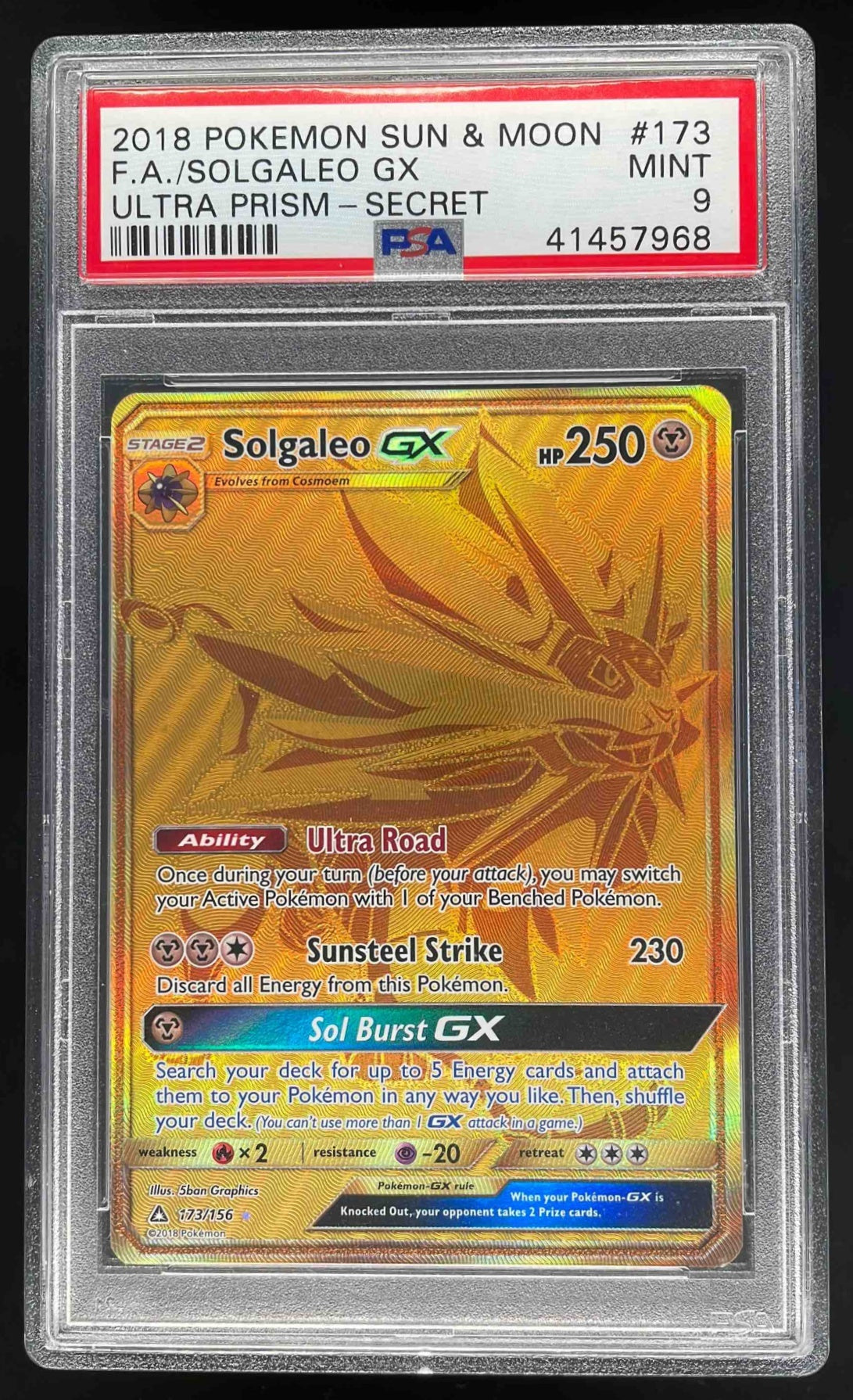 2018 Pokemon Sun & Moon Ultra Prism #173/156 Solgaleo PSA 9