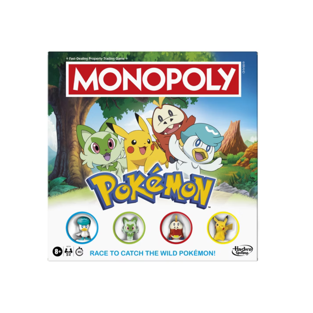 This Pokémon game is an engaging kids board game for Family Game Night, and it makes a great Pokémon gift for boys, girls, and kids ages 8 and up who are Pokémon fans and Monopoly board game fans. (c)2025 Pokémon/ Nintendo / Creatures Inc./ GAME FREAK Inc. The Hasbro and Monopoly names and logos, the distinctive design of the gameboard, the four corner squares, the Mr. Monopoly name and character, as well as each of the distinctive elements of the board and playing pieces are trademarks of Hasbro, Inc. for its property trading game and game equipment.