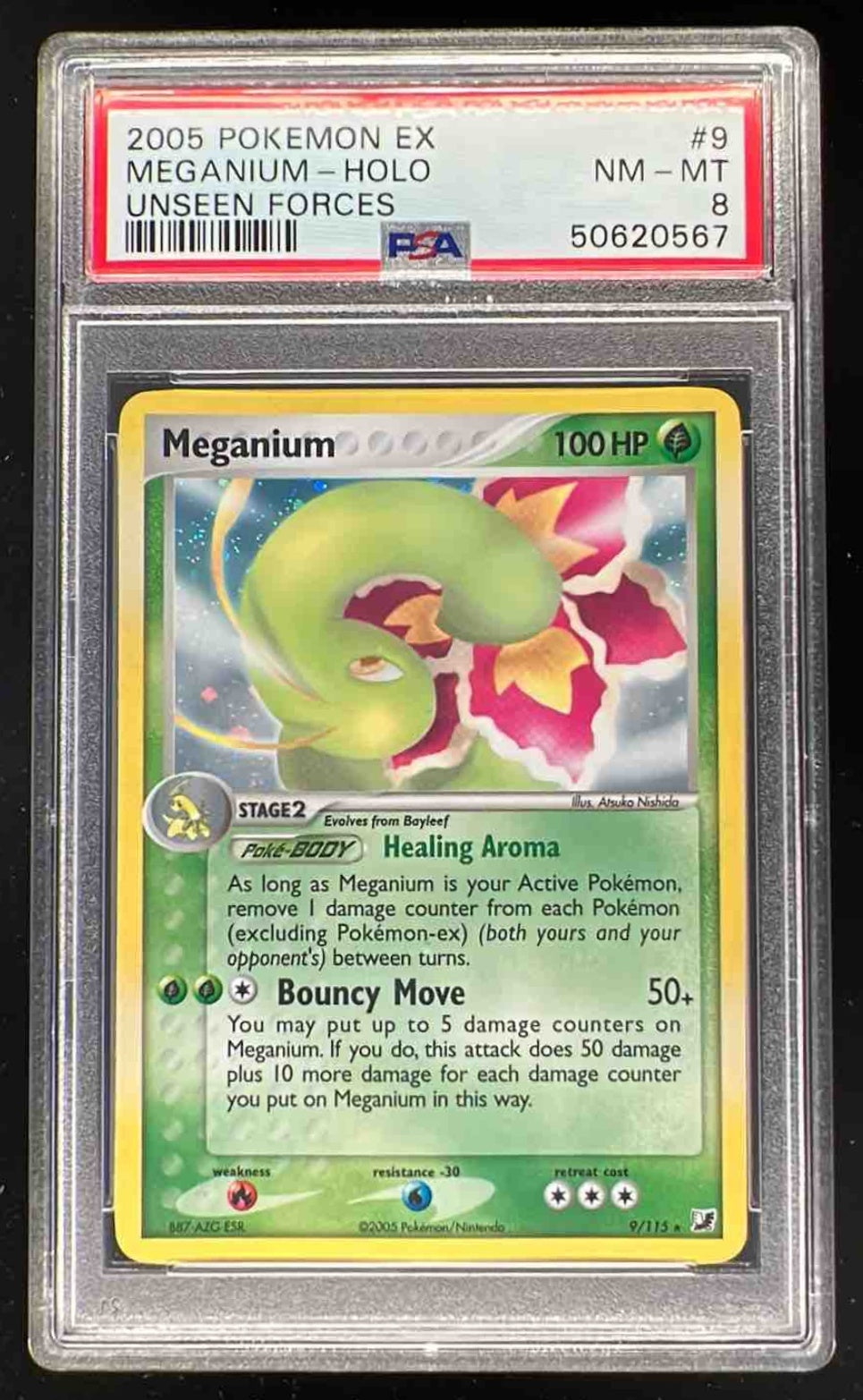 2005 Pokemon EX Unseen Forces #9/115 Meganium Holo PSA 8