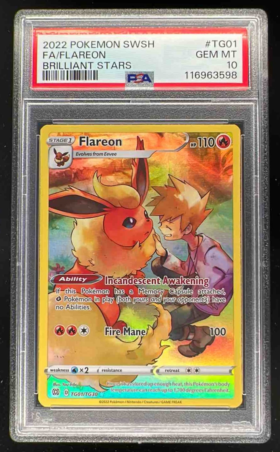 2022 Pokemon Sword & Shield Brilliant Stars Trainer #TG01 Flareon Holo PSA 10