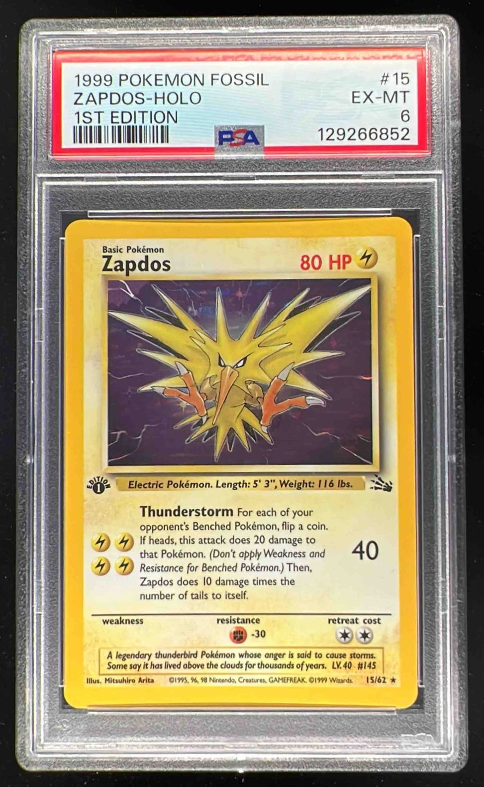 1999 Pokemon Fossil 1st Edition #15/62 Zapdos PSA 6
