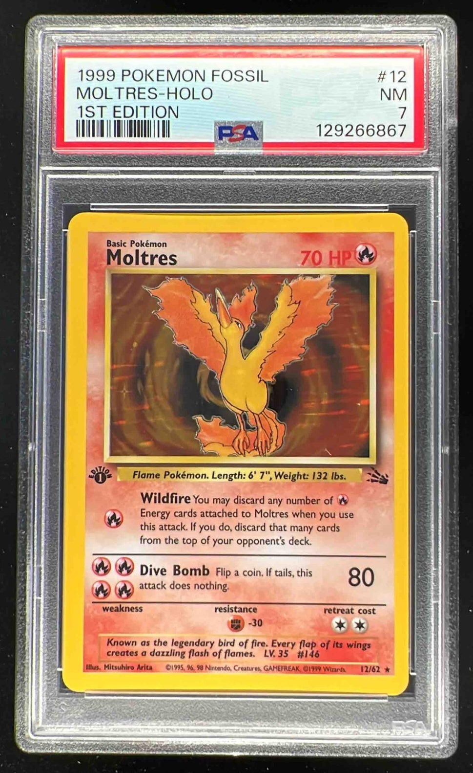 1999 Pokemon Fossil 1st Edition #12/62 Moltres PSA 7