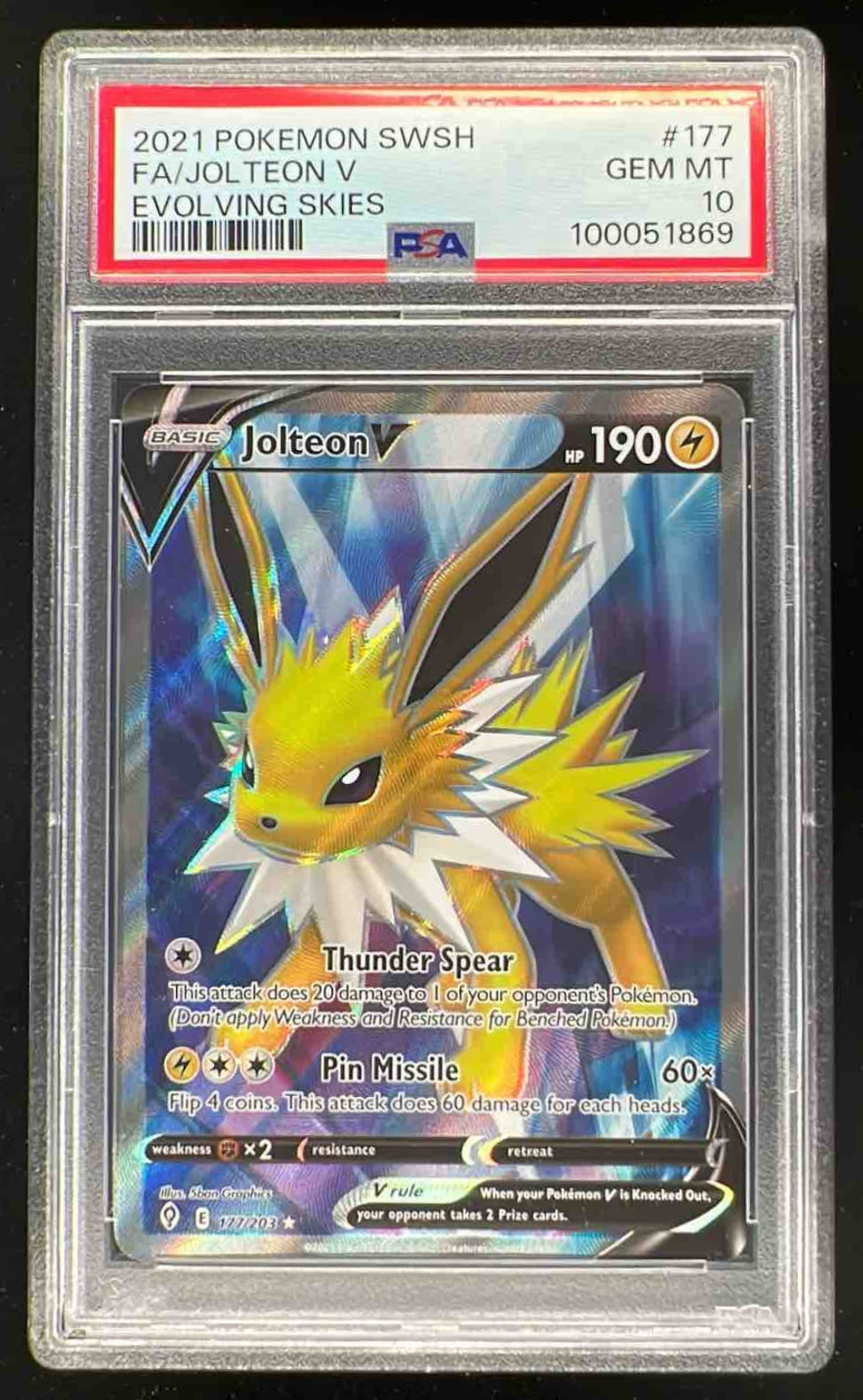 2021 Pokemon Sword & Shield Evolving Skies #177/203 Jolteon V PSA 10