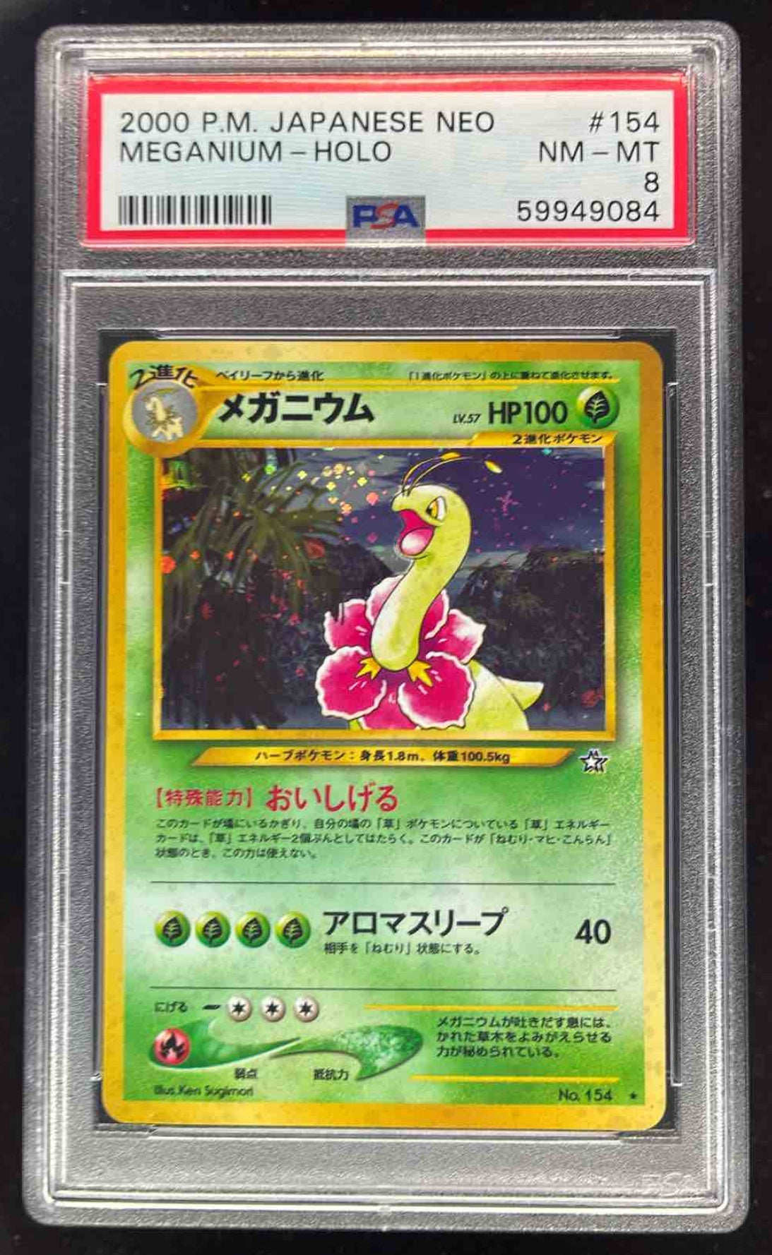 2000 Pokemon Japanese NEO #154 Meganium Rare Holo PSA 8