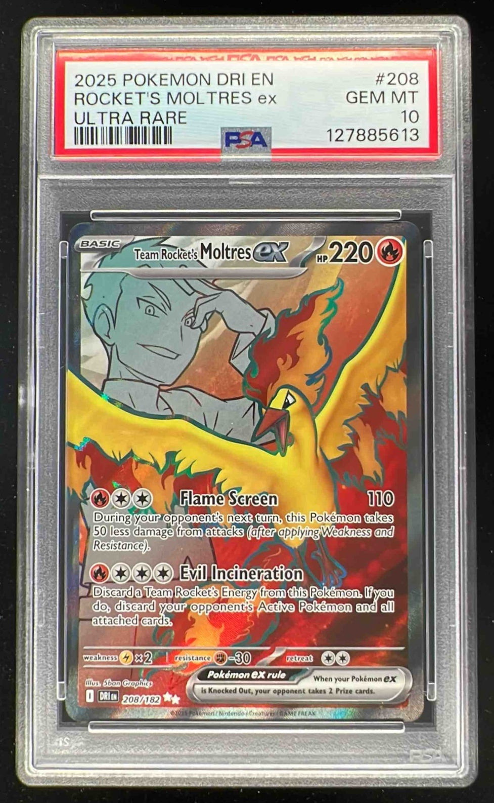 2025 Pokemon SV Destined Rivals #208/182 Team Rocket's Moltres ex PSA 10