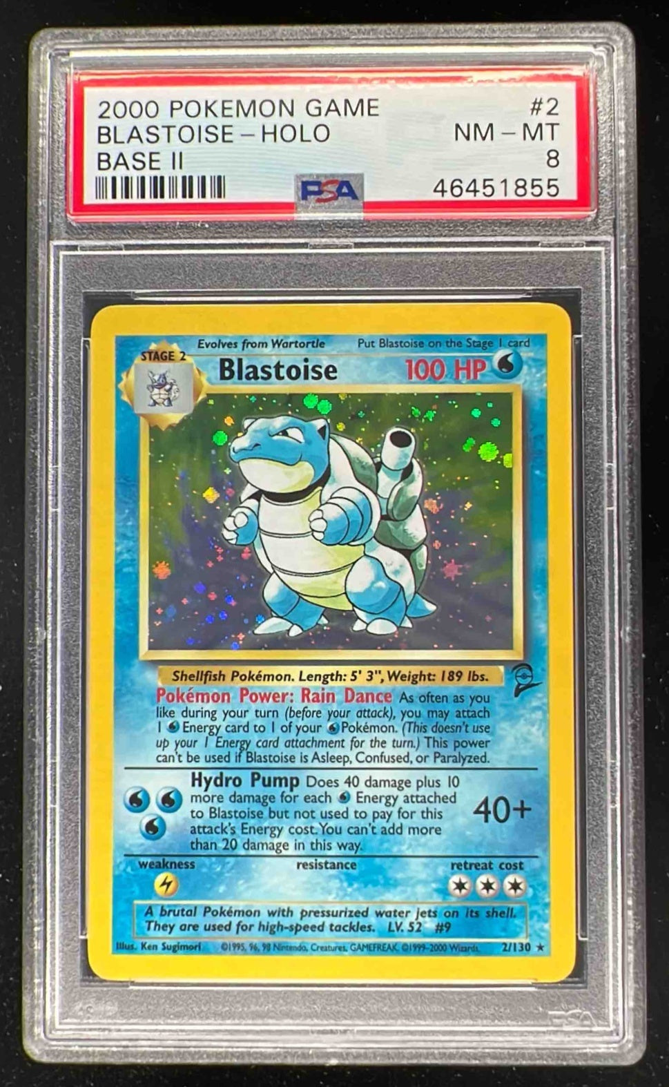2000 Pokemon Set 2 #2/130 Blastoise Holo PSA 8