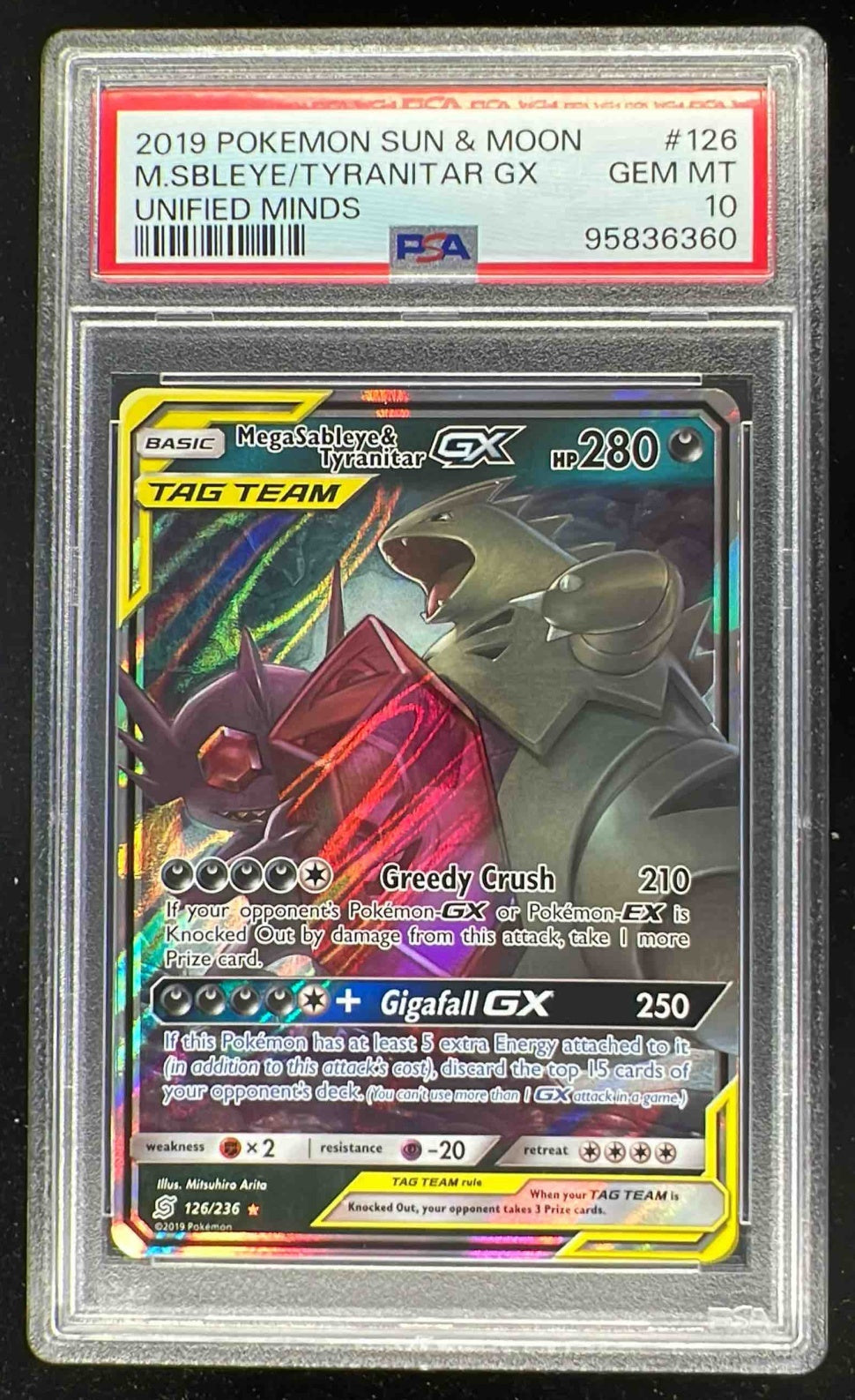 2019 Pokemon Sun Moon Unified Minds Mega Sableye Tyranitar Tag Team Holo PSA 10