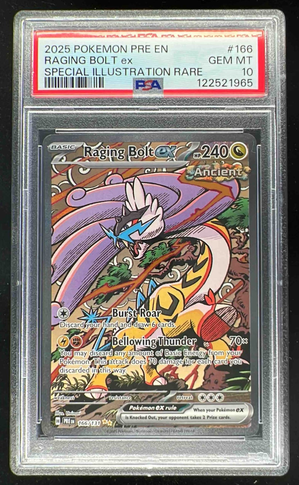 2025 Pokemon Prismatic Evolutions #166/131 Raging Bolt ex PSA 10