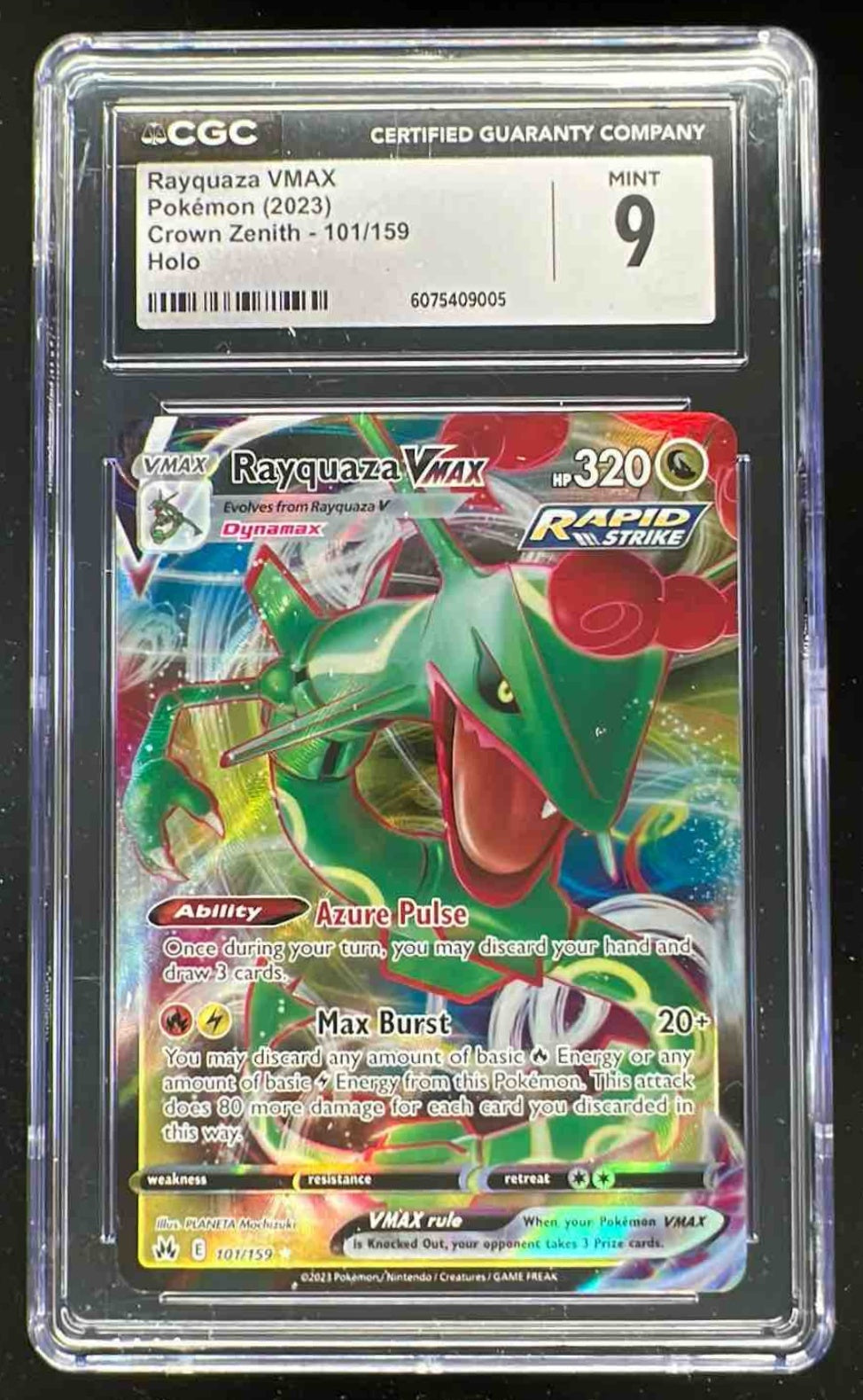 2023 Pokemon Sword & Shield Crown Zenith #101/159 Rayquaza VMAX CGC 9
