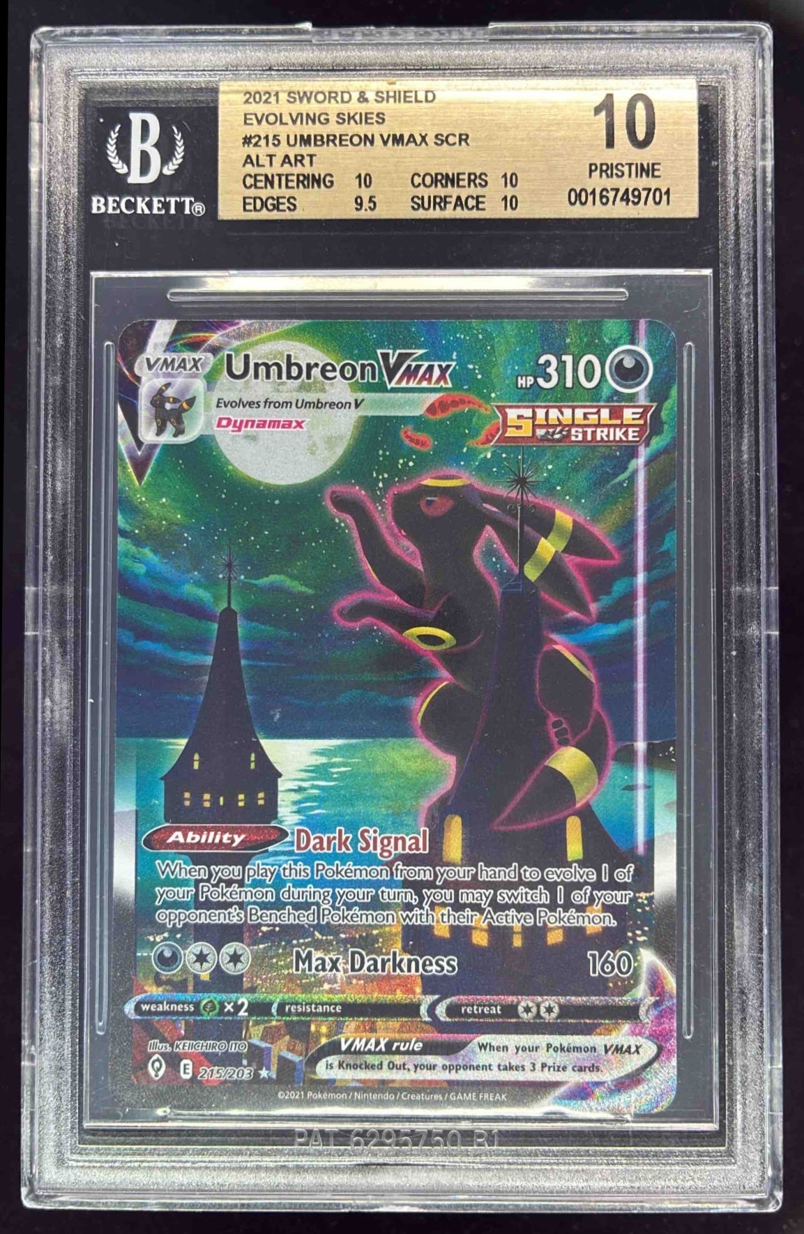 2021 Pokemon Sword & Shield Evolving Skies #215/203 Umbreon VMAX BGS 10