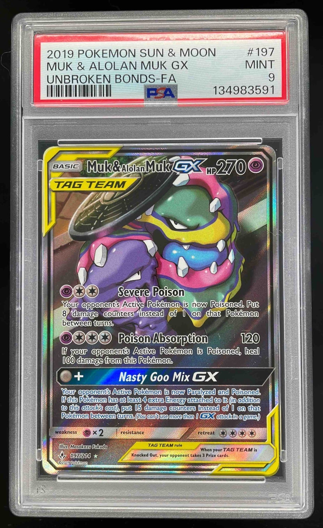 2019 Pokemon Sun & Moon Unbroken Bonds #197/214 Muk & Alolan Muk Tag Team PSA 9