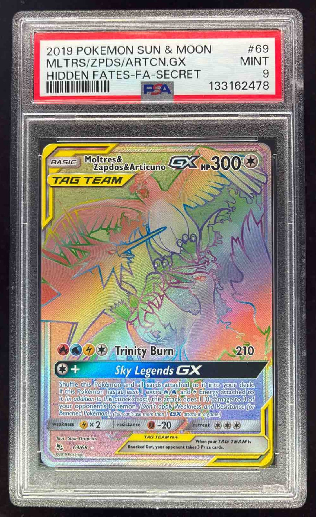 2019 Pokemon SM Hidden Fates #69/68 Moltres & Zapdos & ArticunoTag Team PSA 9