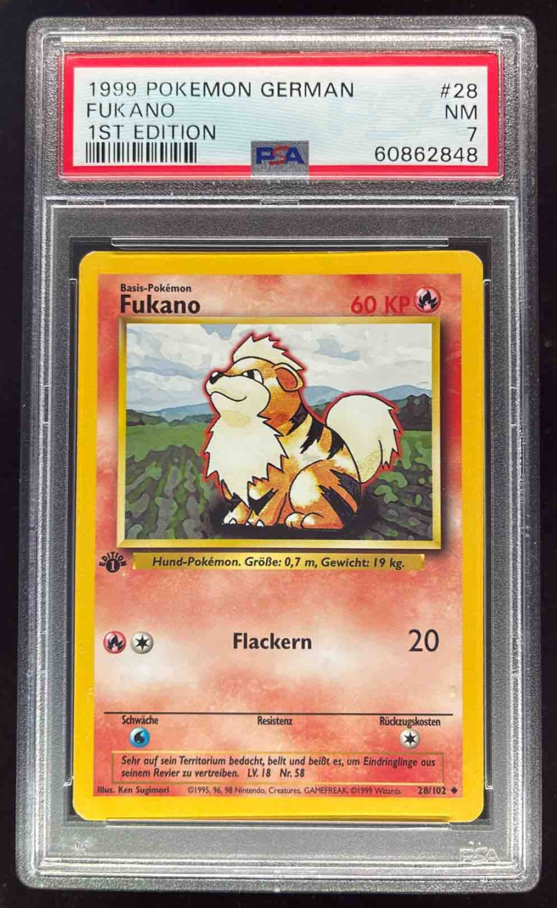 1999 Pokemon German #28 Fukano Growlithe 1st Edition PSA 7