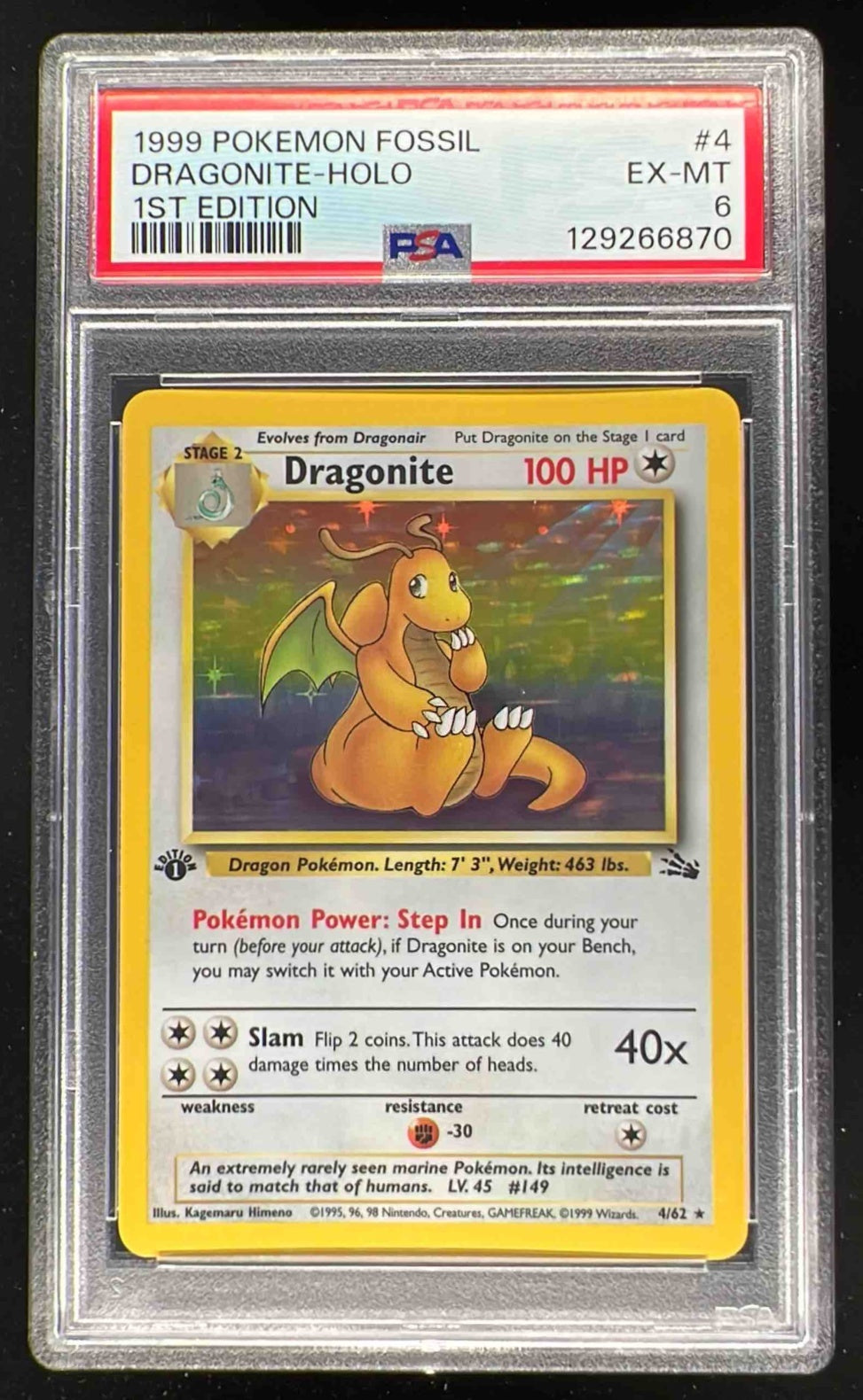 1999 Pokemon Fossil 1st Edition #4/62 Dragonite PSA 6