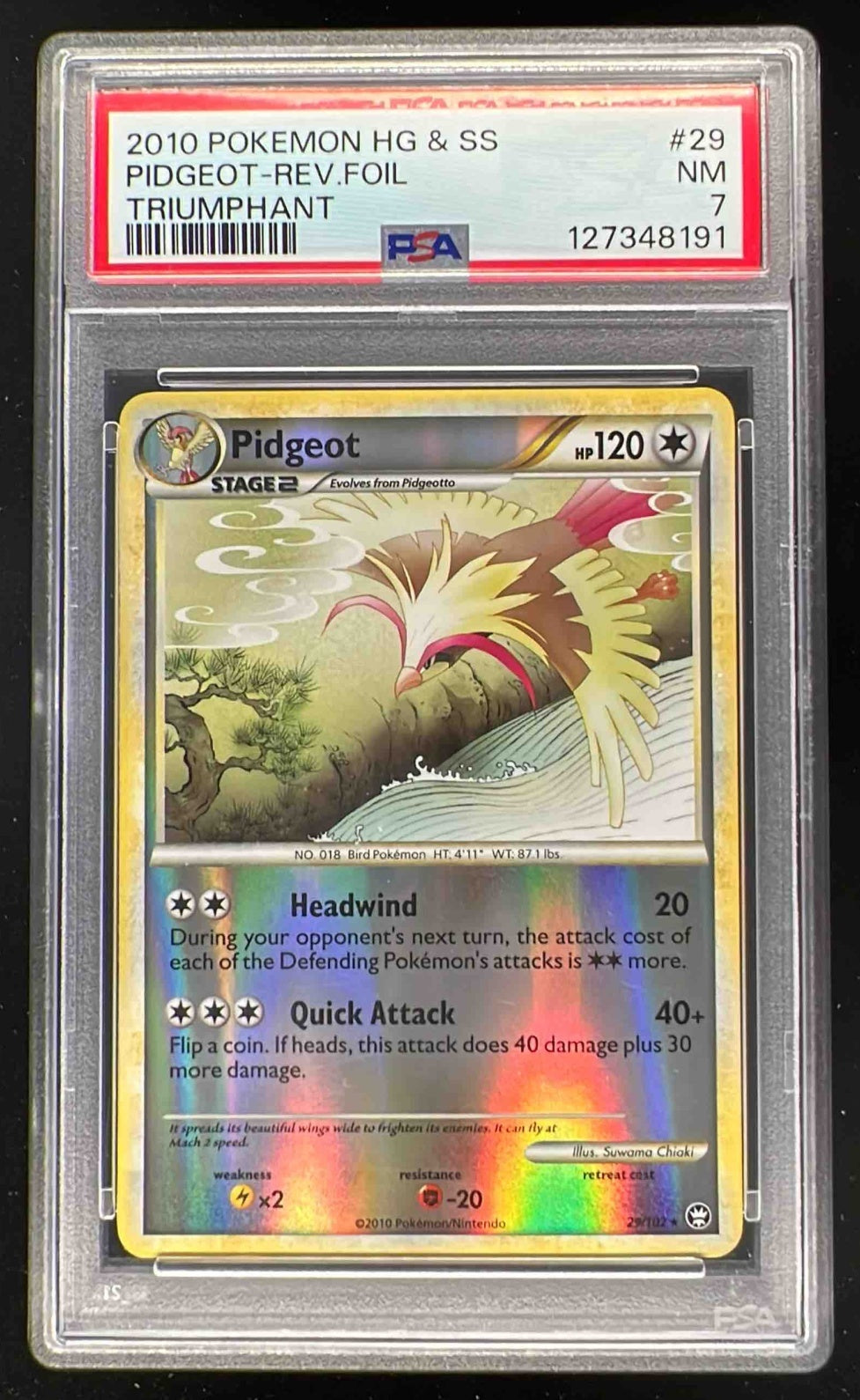 2010 Pokemon HeartGold & SoulSilver Triumphant Reverse Holos #29 Pidgeot PSA 7