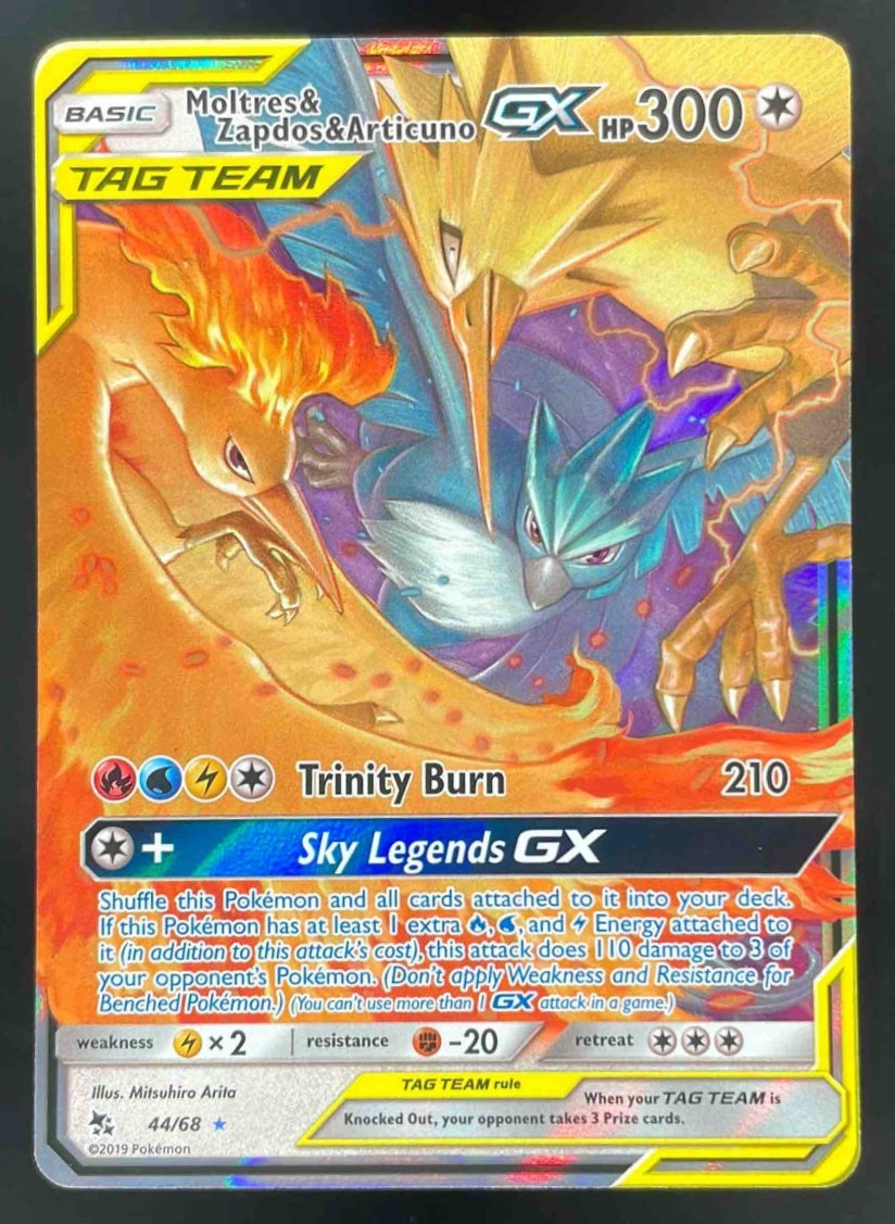 2019 Pokemon SM Hidden Fates #44/68 Moltres & Zapdos & Articuno Tag Team GX