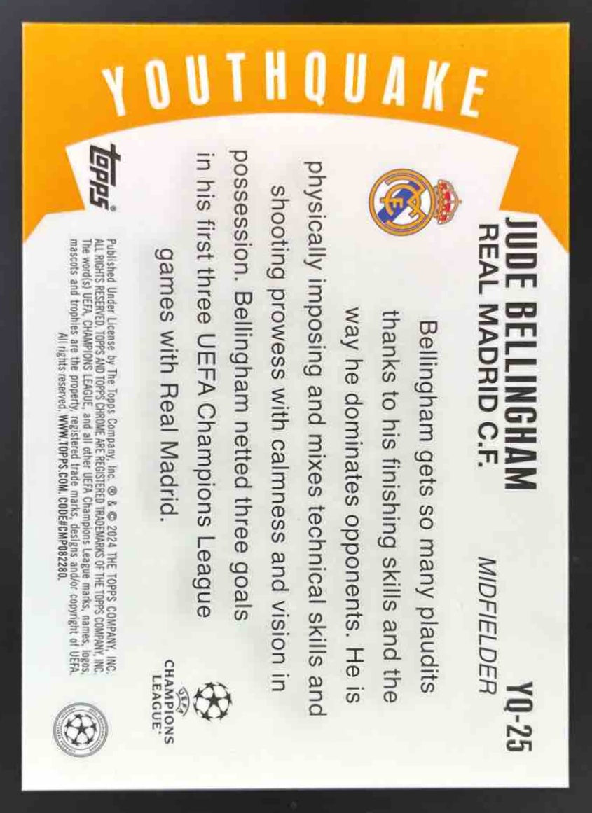 2023 Topps Chrome Youthquake Gold Refractor #YQ-25 Jude Bellingham /50