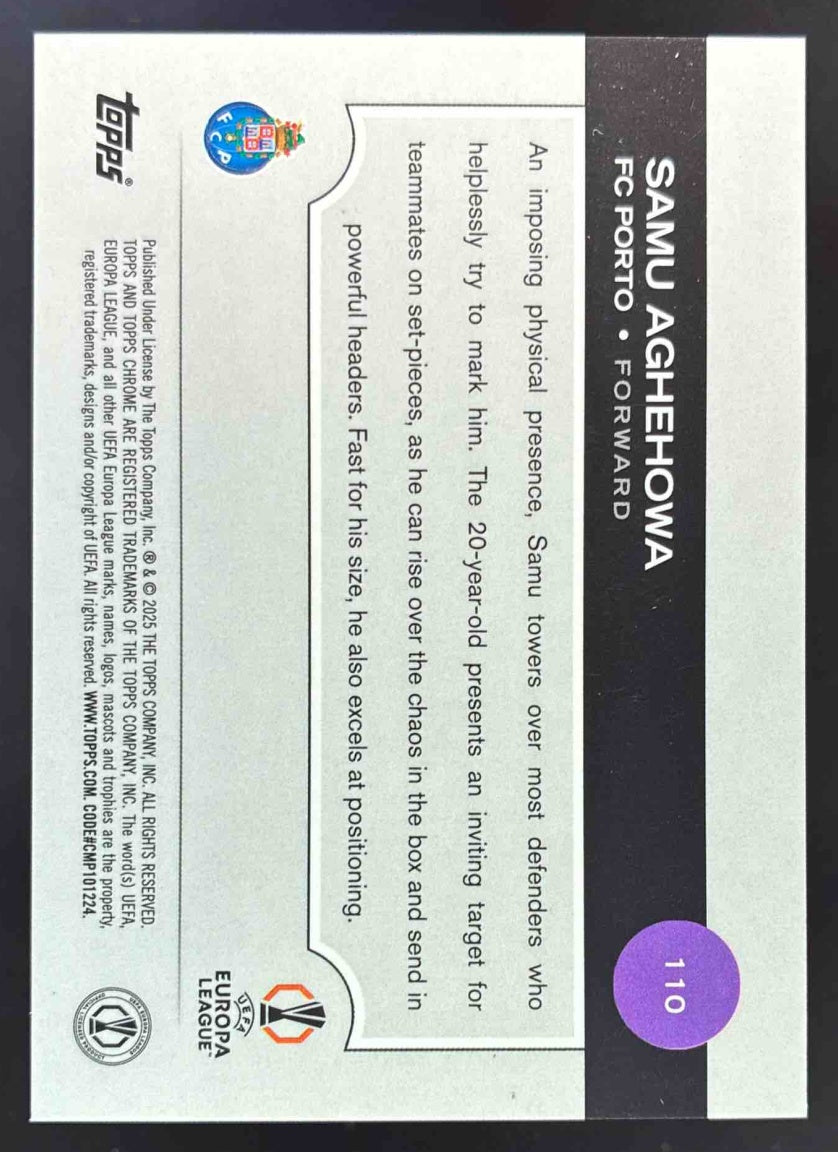 2024-25 Topps Chrome UEFA Black Prism Refractor #110 Samu Aghehowa /10