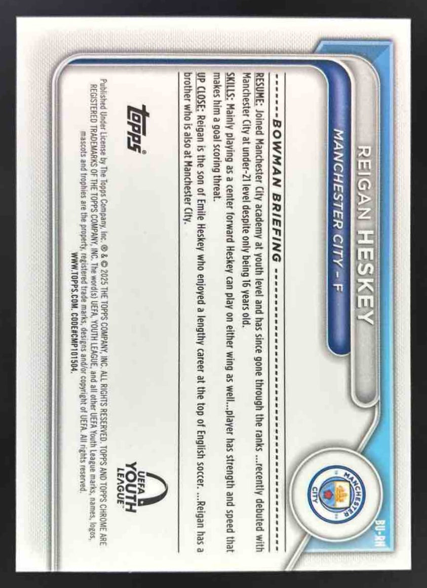 2024-25 Topps Chrome Bowman UEFA Youth League Gold #BU-RH Reigan Heskey RC /50