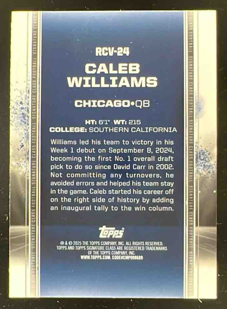 2024 Topps Signature Class Chrome Variations Purple Caleb Williams RC /100