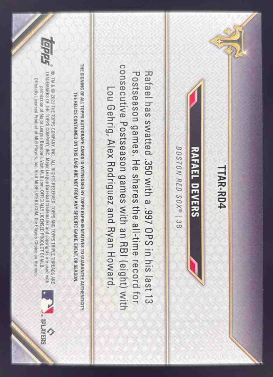 2021 Topps Triple Threads Autograph Relics #TTAR-RD4 Rafael Devers Auto /27