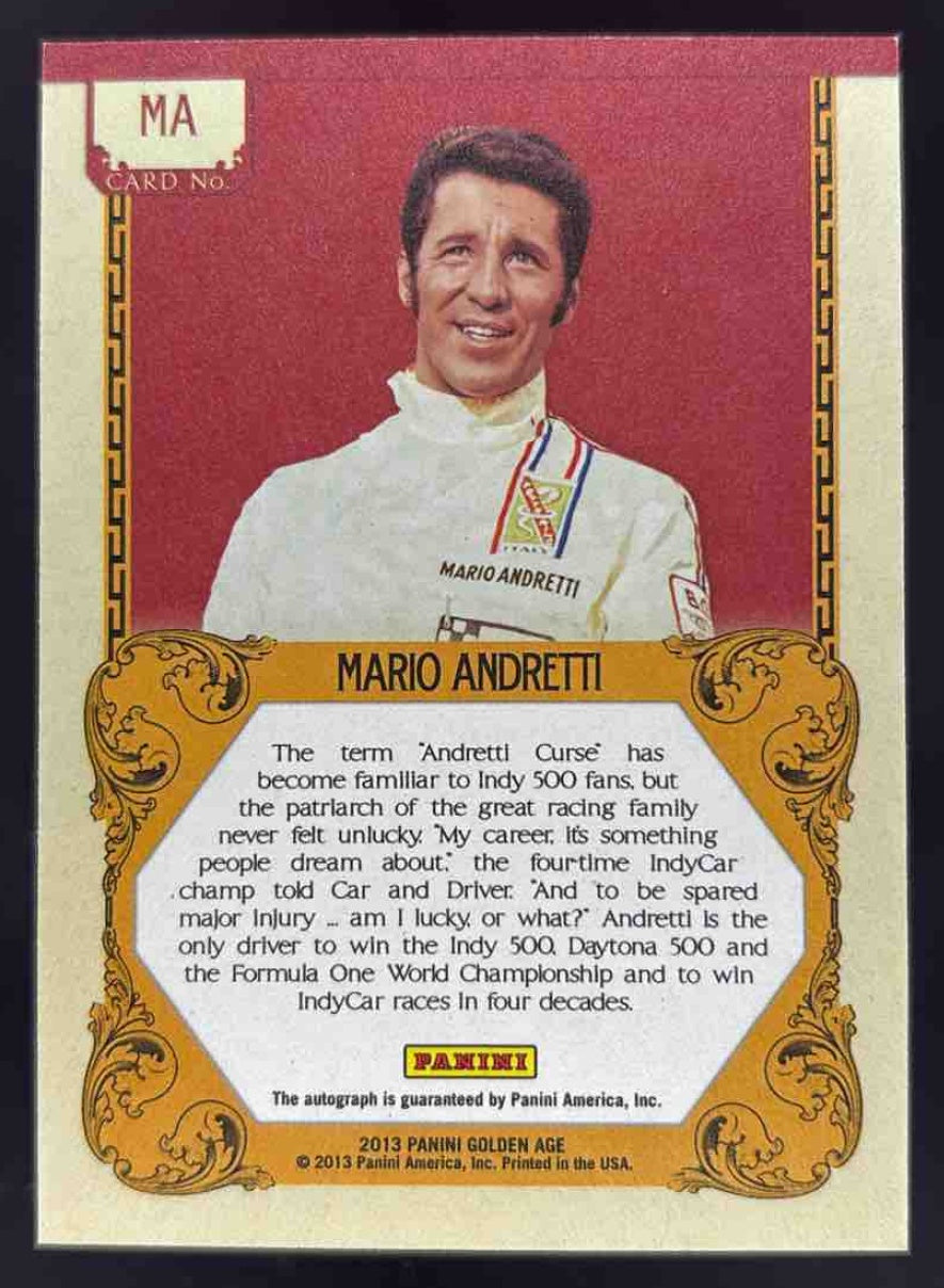 2013 Panini Golden Age Historic Signatures #MA Mario Andretti Autograph Auto