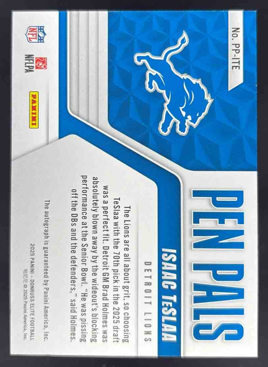 2025 Panini Donruss Elite Pen Pals Horizontal Blue Ink #PP-ITE Isaac TeSlaa Auto