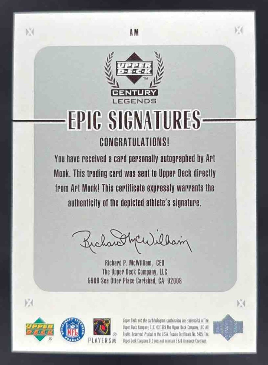 1999 Upper Deck Century Legends Epic Signatures #AM Art Monk Auto