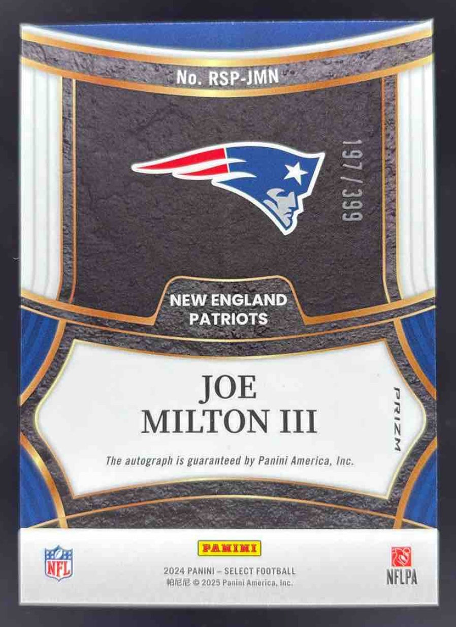 2024 Panini Select Rookie Signatures #RSP-JMN Joe Milton III RC Auto /399