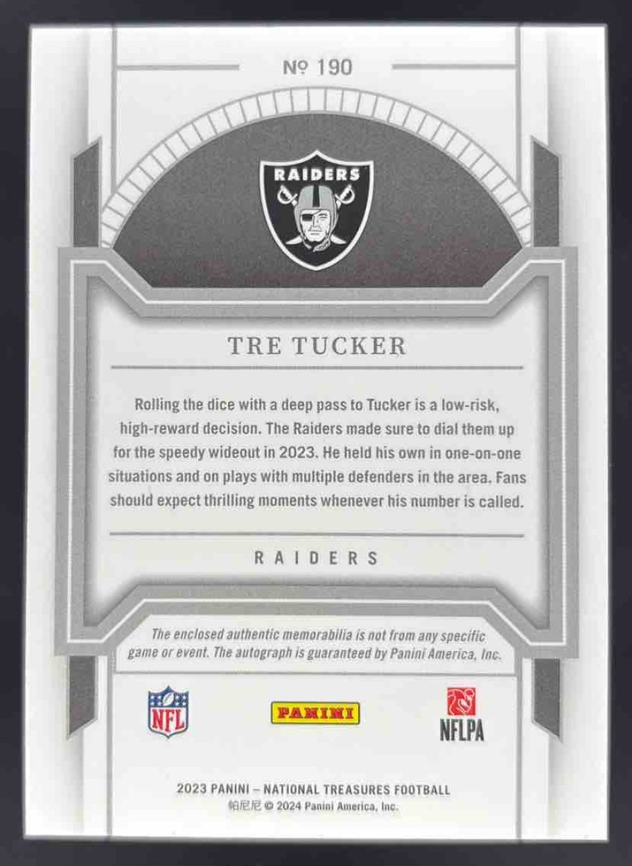 2023 Panini National Treasures #190 Tre Tucker Autograph RC Auto /99