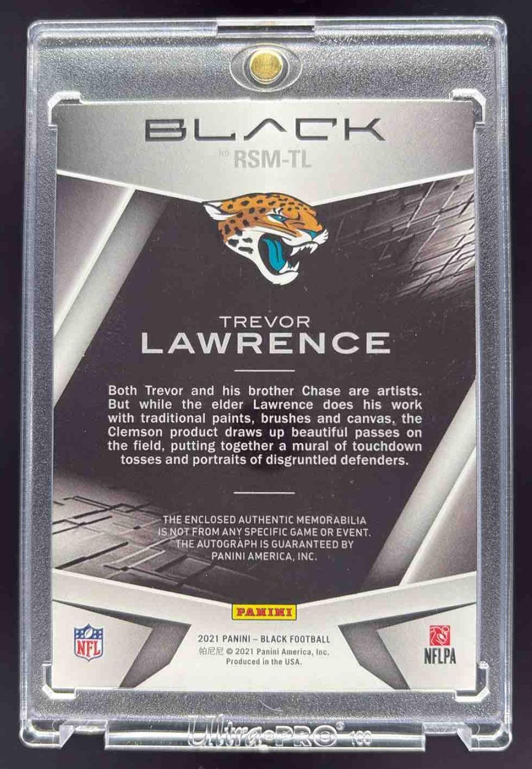 2021 Panini Black Rookie Materials Copper #RSM-TL Trevor Lawrence RC Auto /15