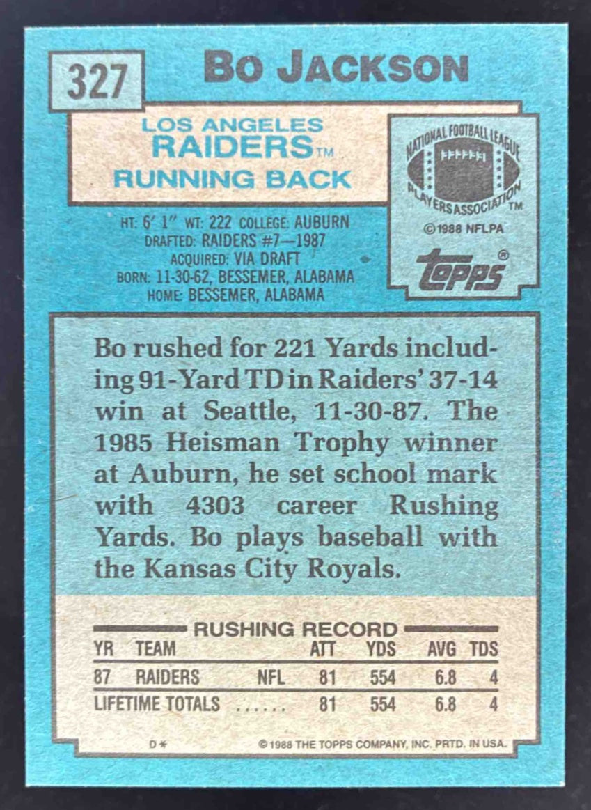 1988 Topps #327 Bo Jackson RC